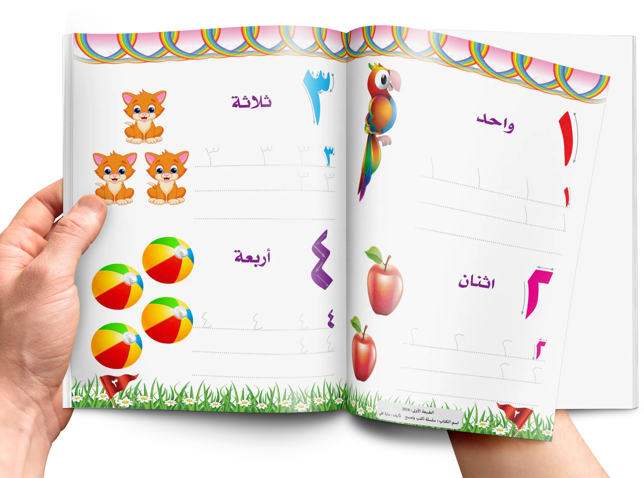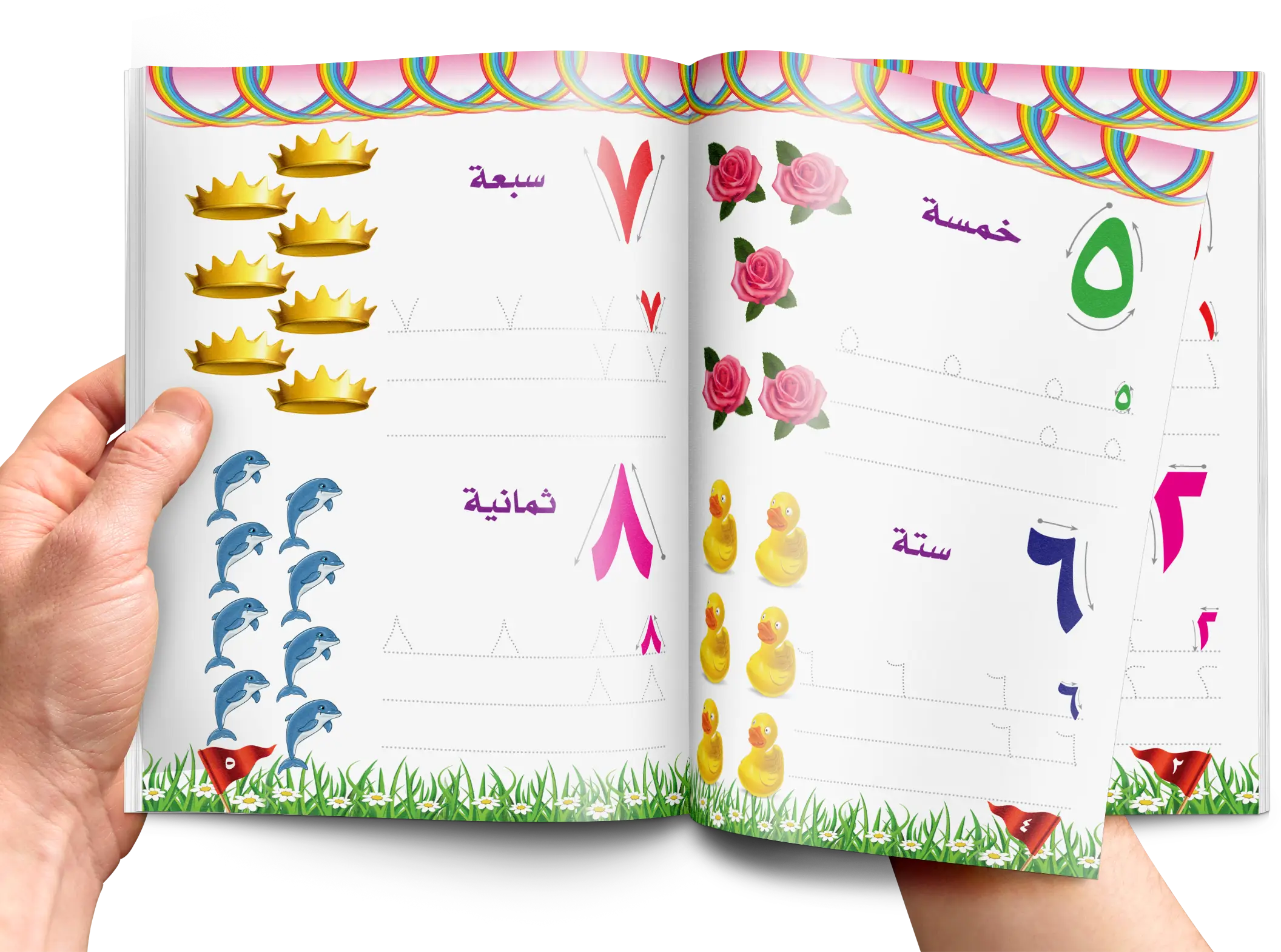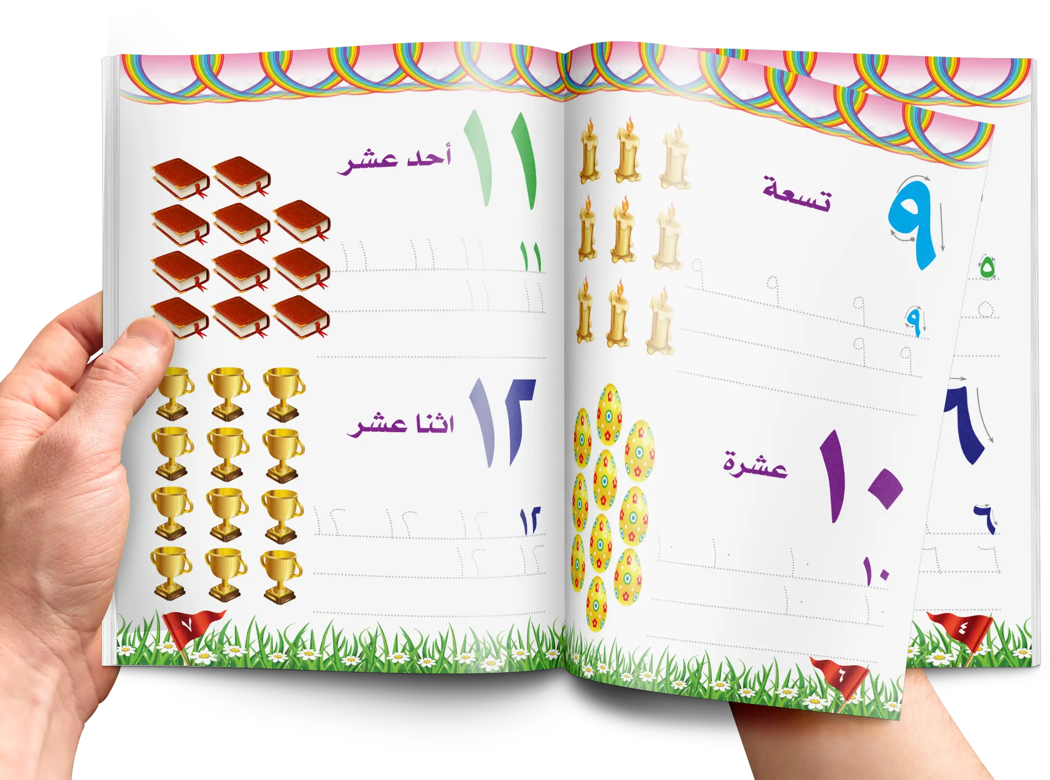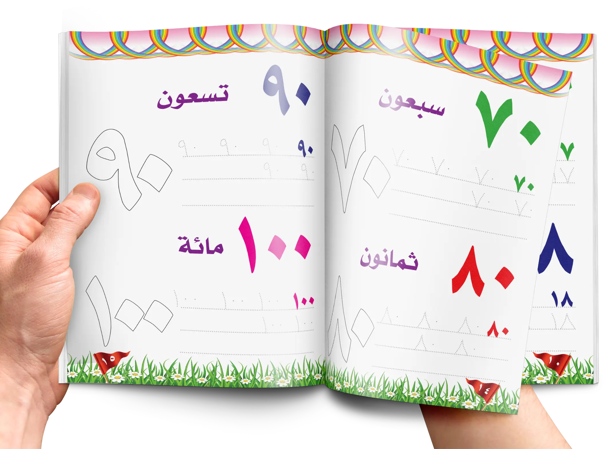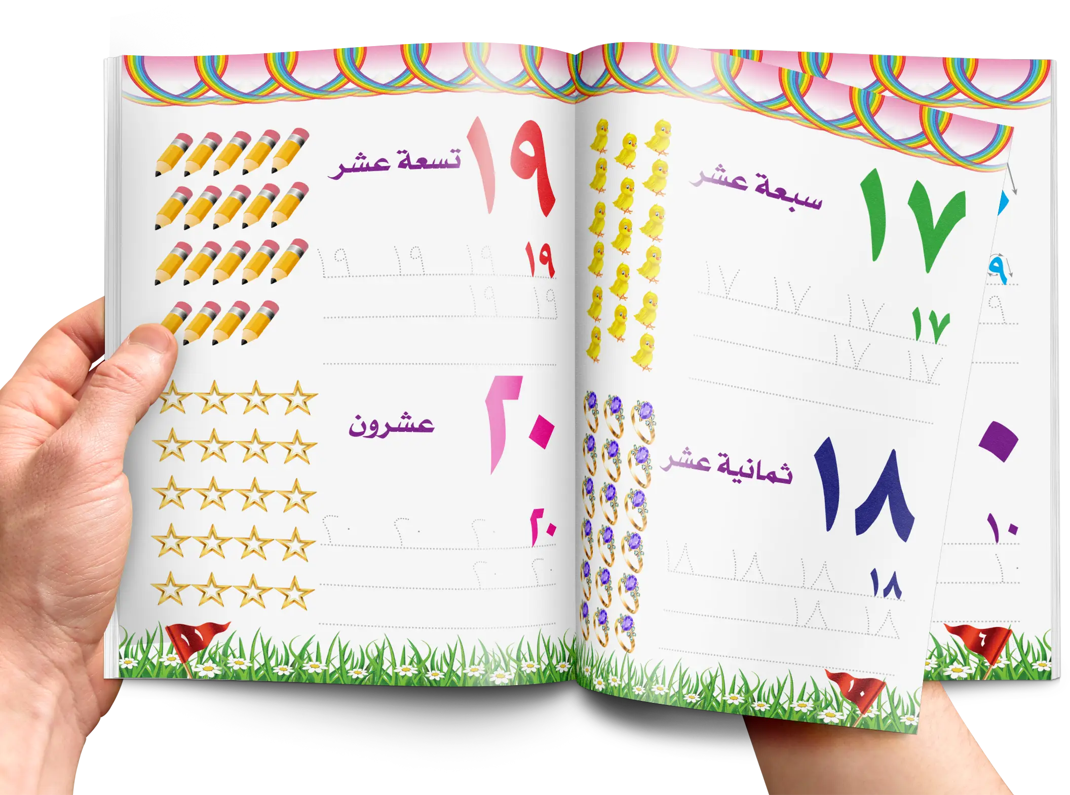 يتدرب فيه الطفل على كتابة الأرقام مرات عديدة مع إمكانية مسحها والكتابة مرة أخرى ويشمل الكتاب الأرقام من ١ : ٢٠.