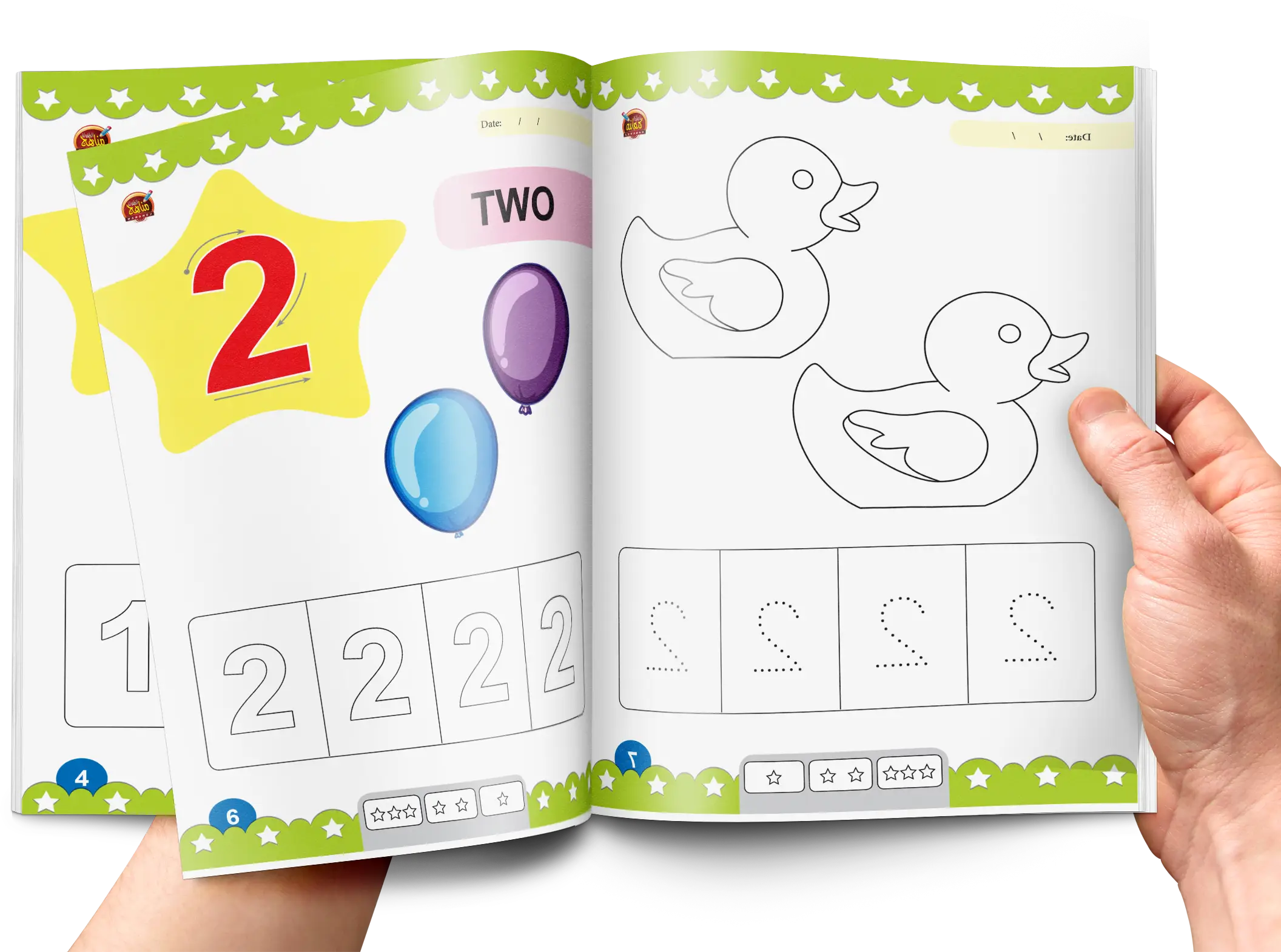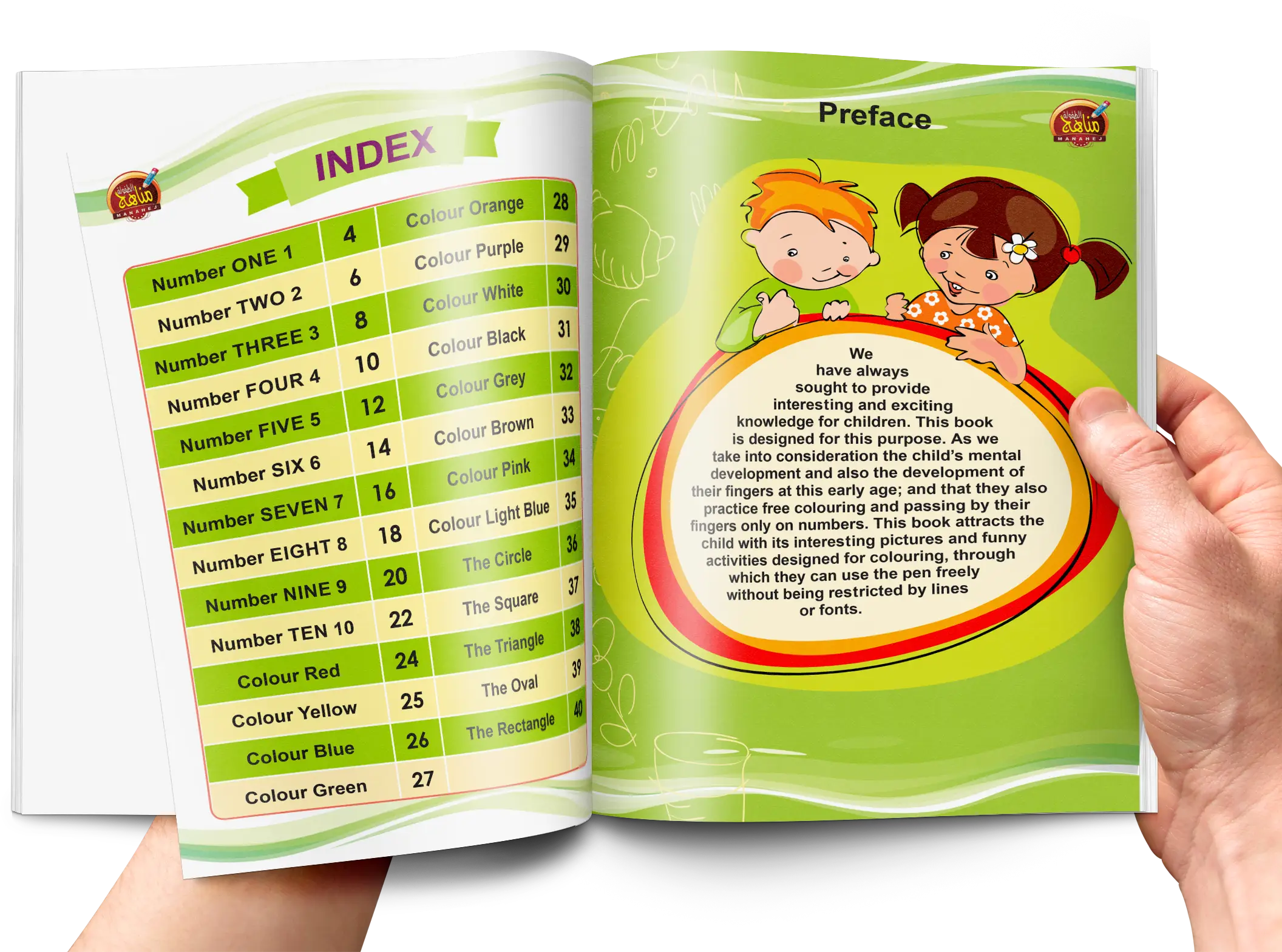 - يتميز كتاب الأرقام أيضاً بتعليم الألوان والأشكال باللغة الأنجليزية بشكل مبسط وجذاب لهذه المرحلة العمرية.