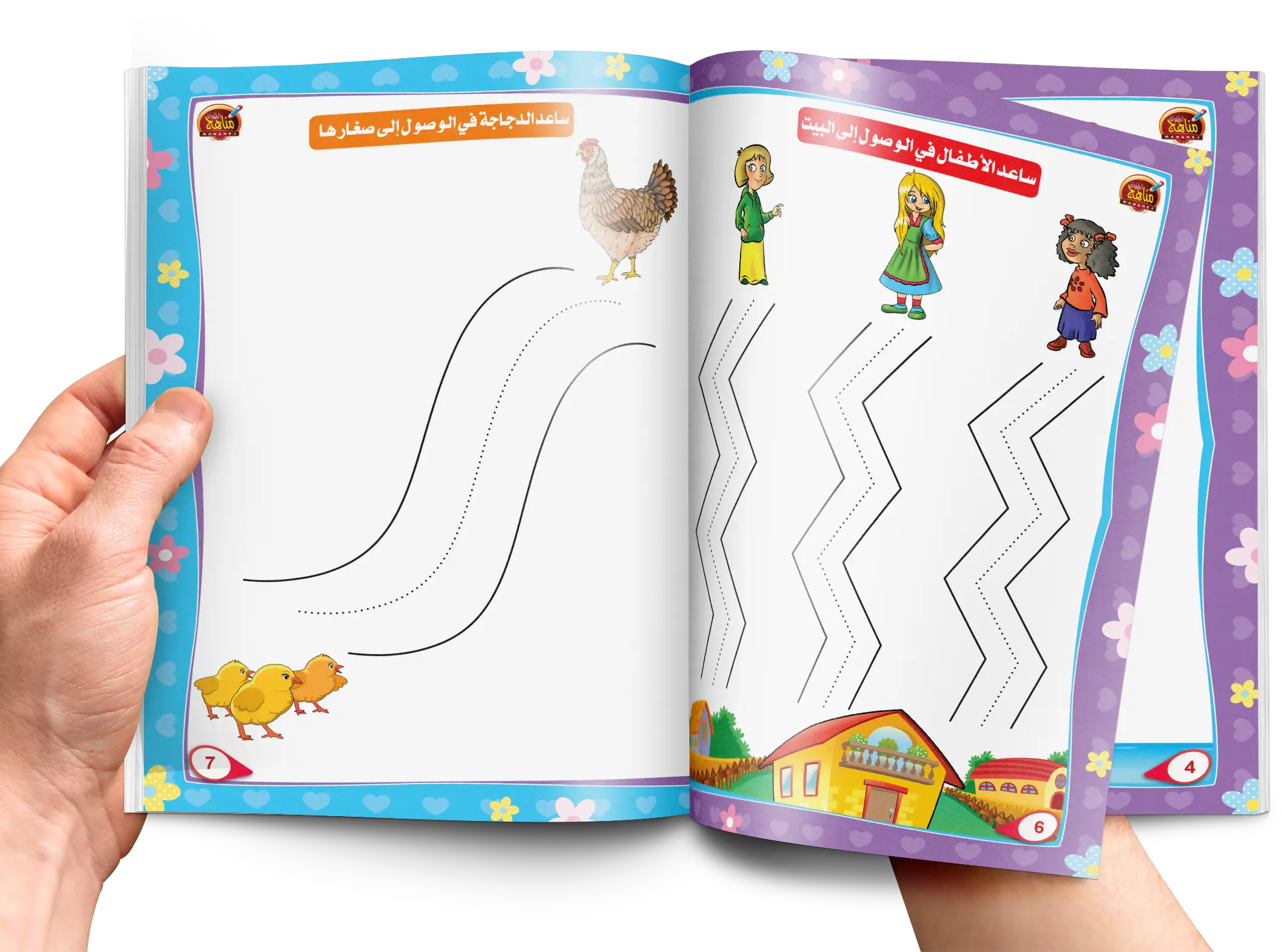 يساعد على ( تنمية التركيز وتقوية الأعصاب ) يحتوي على العديد من الألعاب البسيطة التي يستخدم الطفل من خلالها إصبعه للسير داخل الشكل،