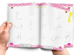 وفى المقابل صفحة التدريب تحتوى على مدلول أخر مفرغ يقوم الطفل بتلوينه ويقوم بتلوين وبتوصيل نقاط الحرف فى هذه المرحلة.