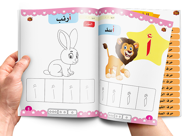 يتميز كتاب الحروف العربية بوجود الحـــرف كبير بالاضافة الى مدلــــول بحجم كبيـــــــر