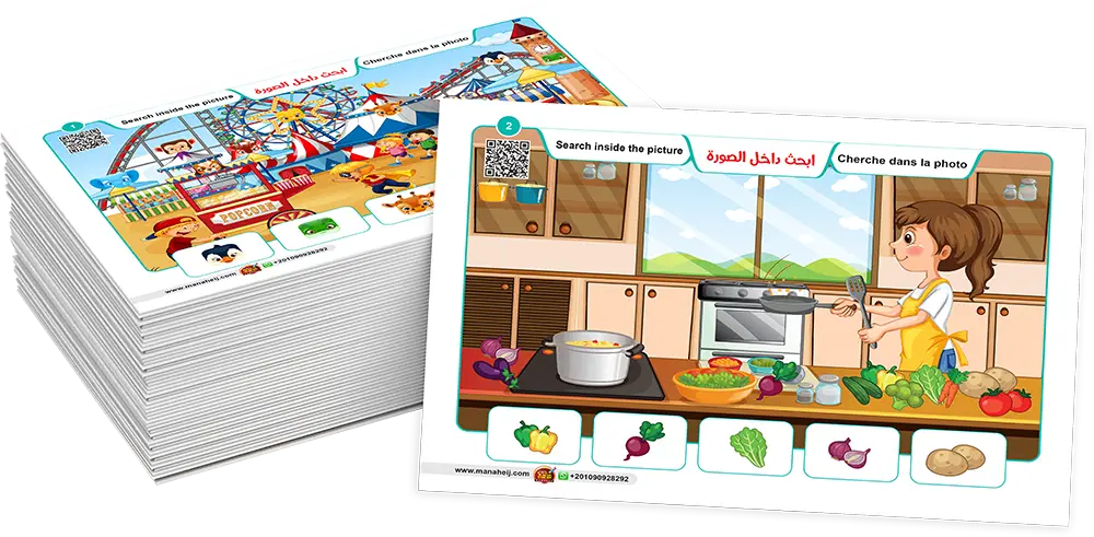 ابحث داخل الصورة: هي مجموعة بطاقات تفاعلية لتنمية مهارات الطفل والذكاء البصري عبر انشطة تفاعلية وتمرينات ممتازة.