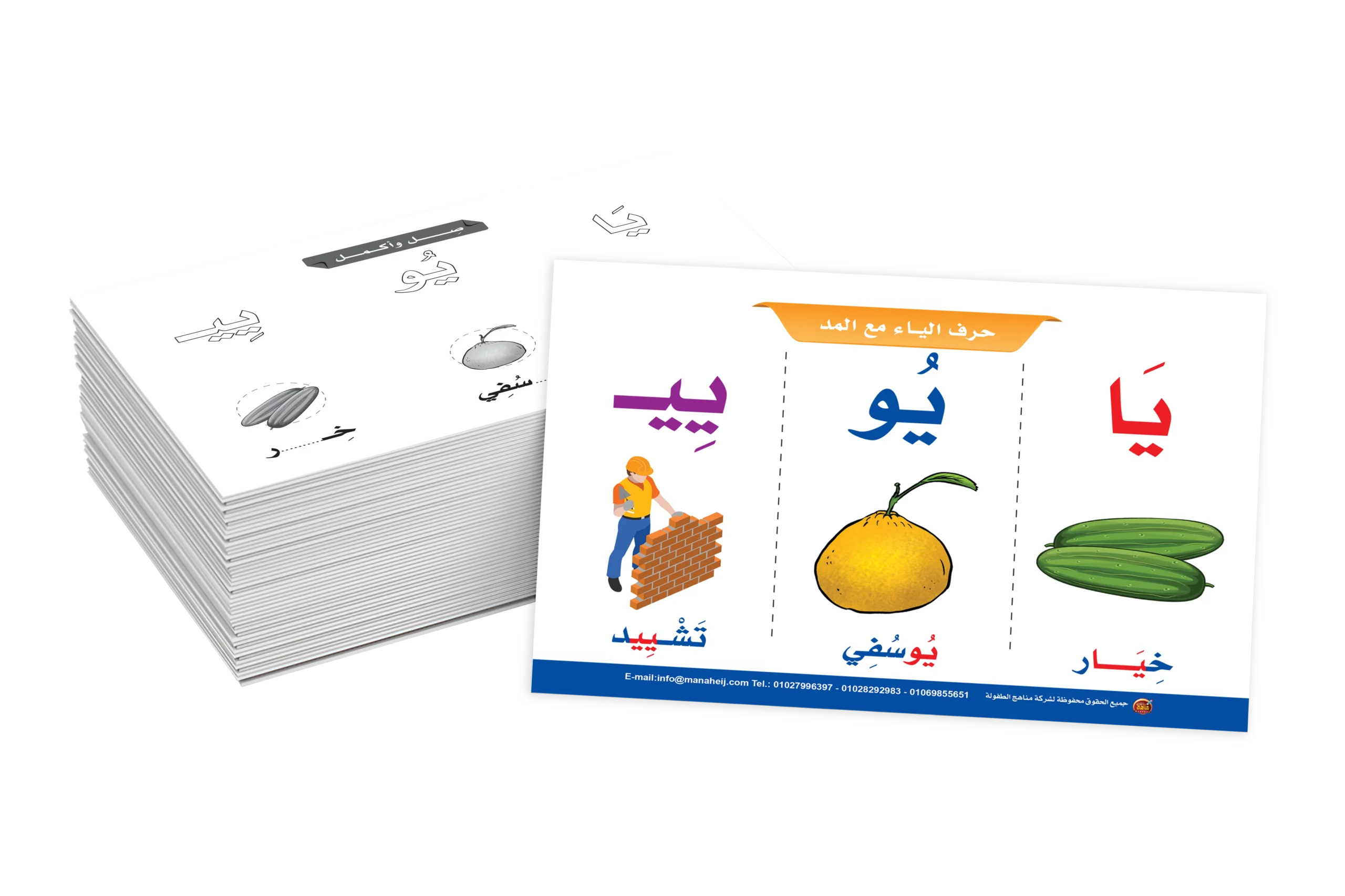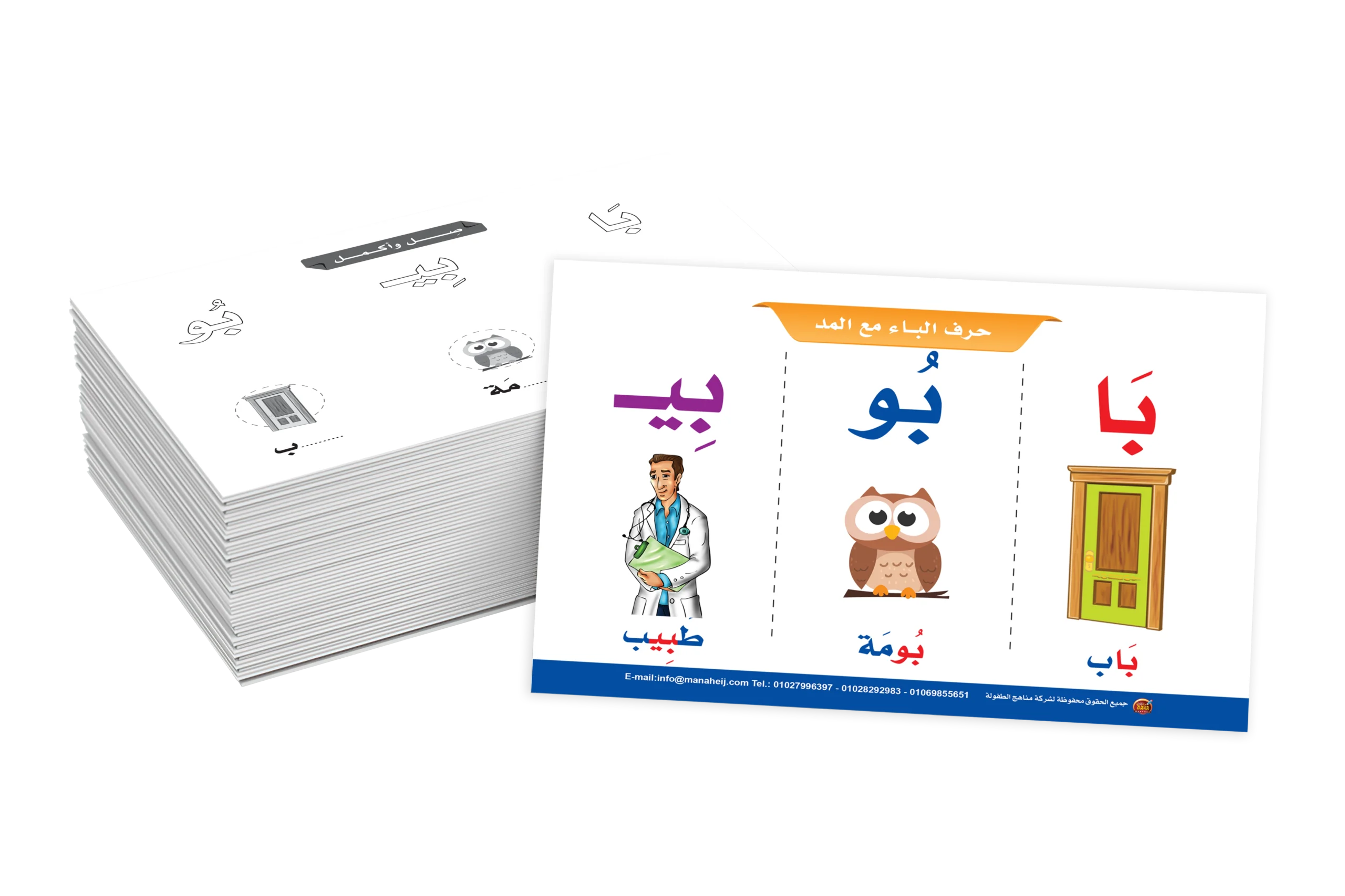 يستمتع الطفل من خلال بطاقات مشوقة ذات ألوان جميلة لكل حرف يتعلم من خلالها حروف المد مع الاستعانة بمدلولات ينطقها الطفل لكل حرف.