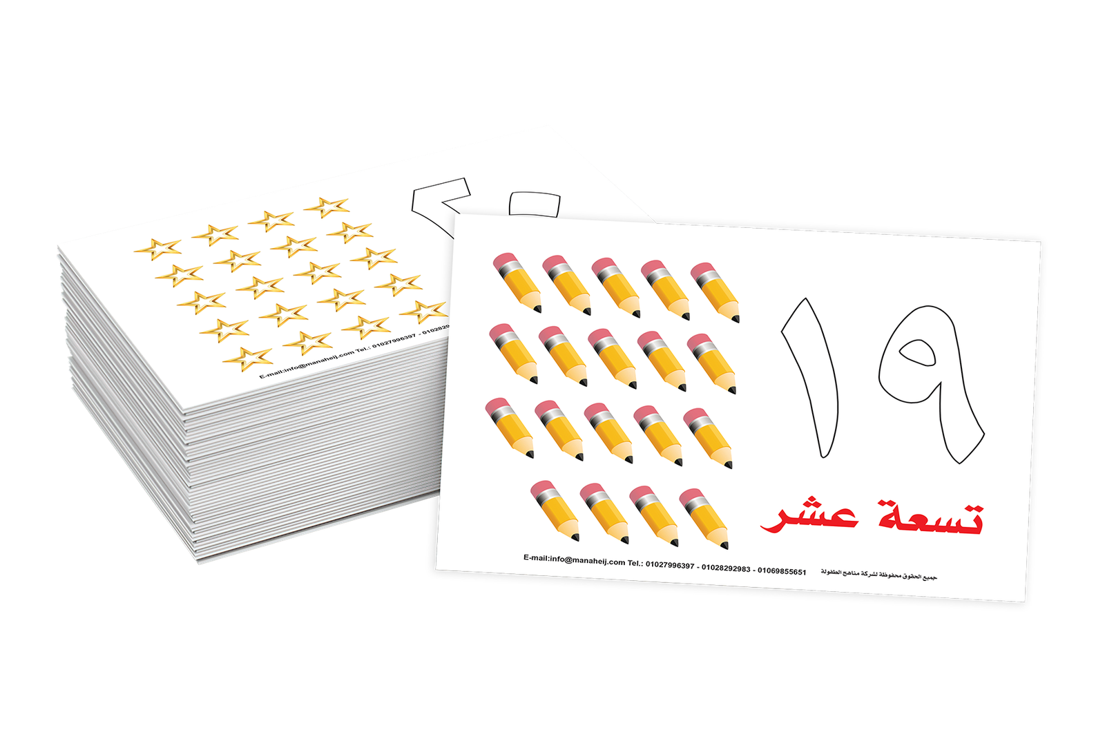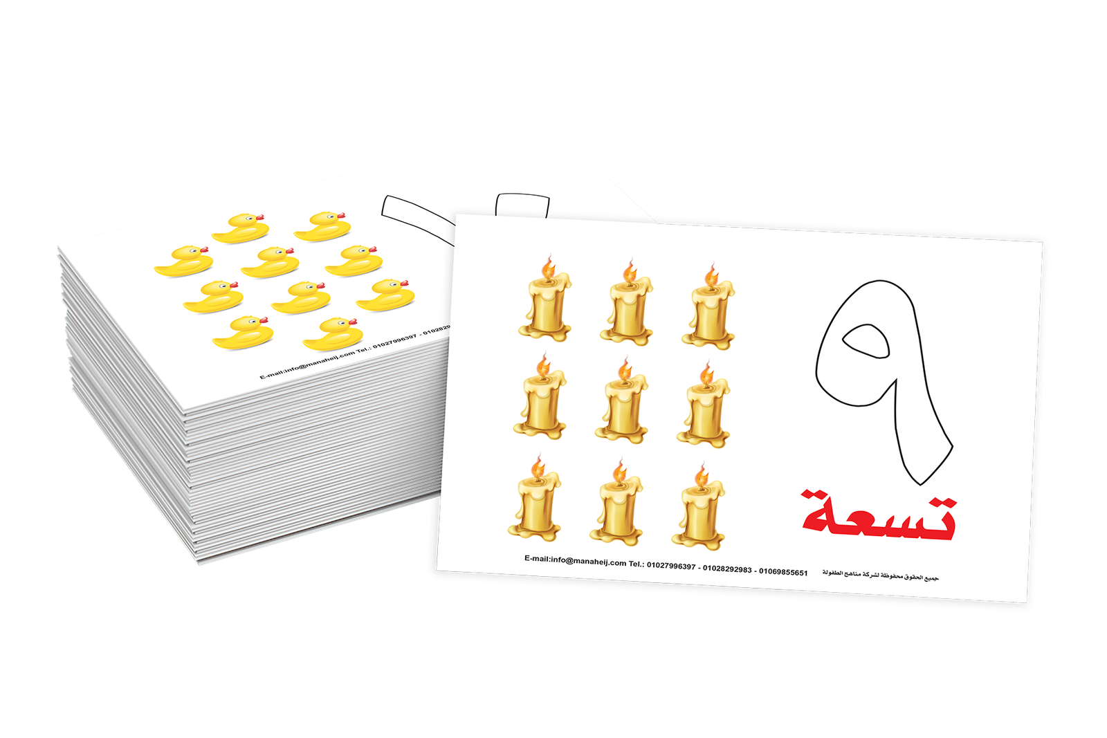 بطاقة لكل رقم يتعلم الطفل من خلالها شكل الأرقام إلى 100 ويمكن استخدامها كلعبة شيقة للأطفال بتجميع أدوات على حسب الرقم الذي ترفعه المعلمة.