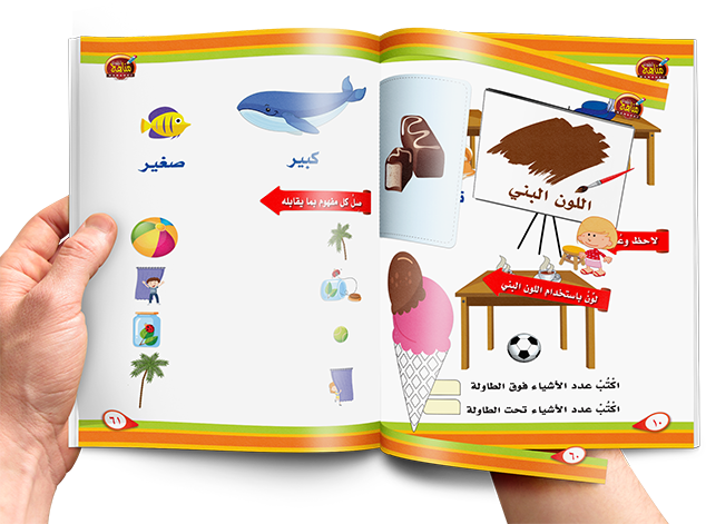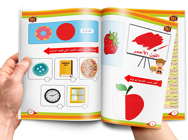 ونتعلم أيضاً فى الكتاب الألوان والمفاهيم والأشكال المختلفة وسوف نستمتع معاً بالصور الجميلة والتدريبات المثيرة