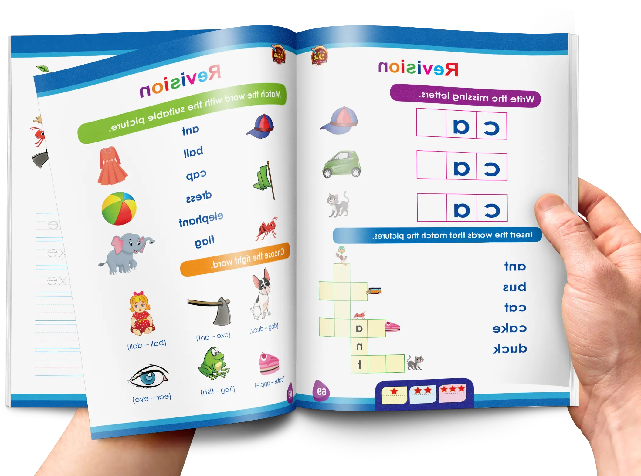 - مجموعة من التدريبات الشيقة والتي تثير فضول الطفل للمتابعة، كالمتاهات والكلمات المتقاطعة.