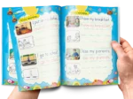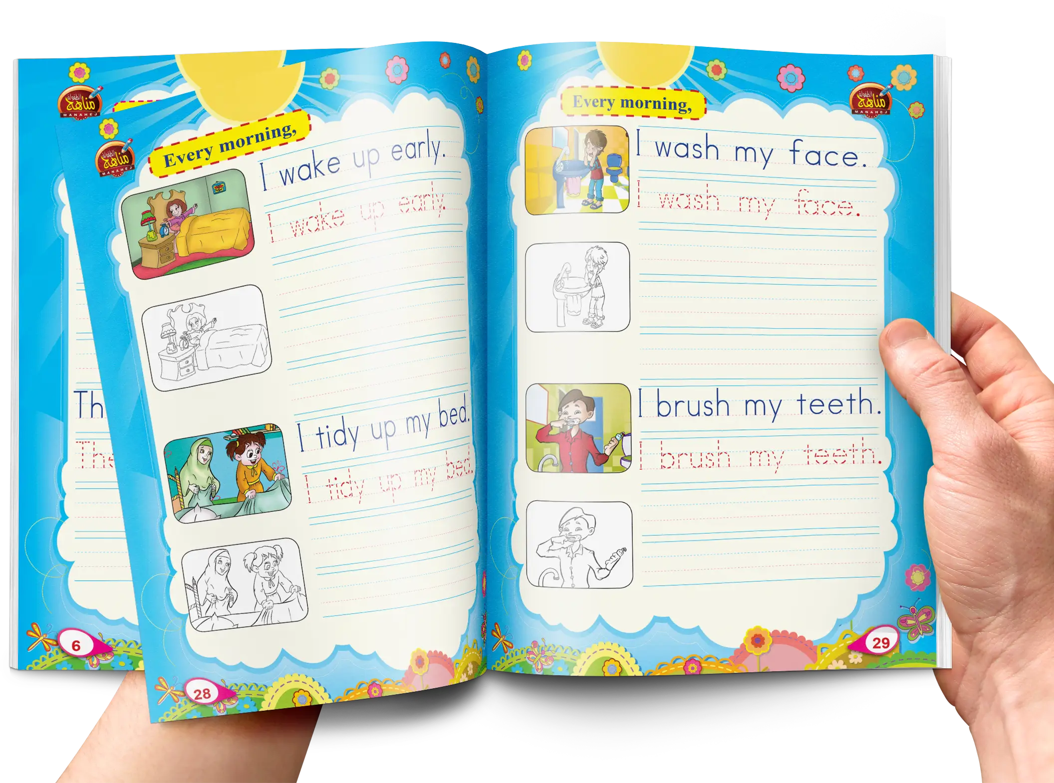 - ونختم الكتاب بجمل توضح عادات الطفل اليومية مصحوبة بصور للتوضيح.