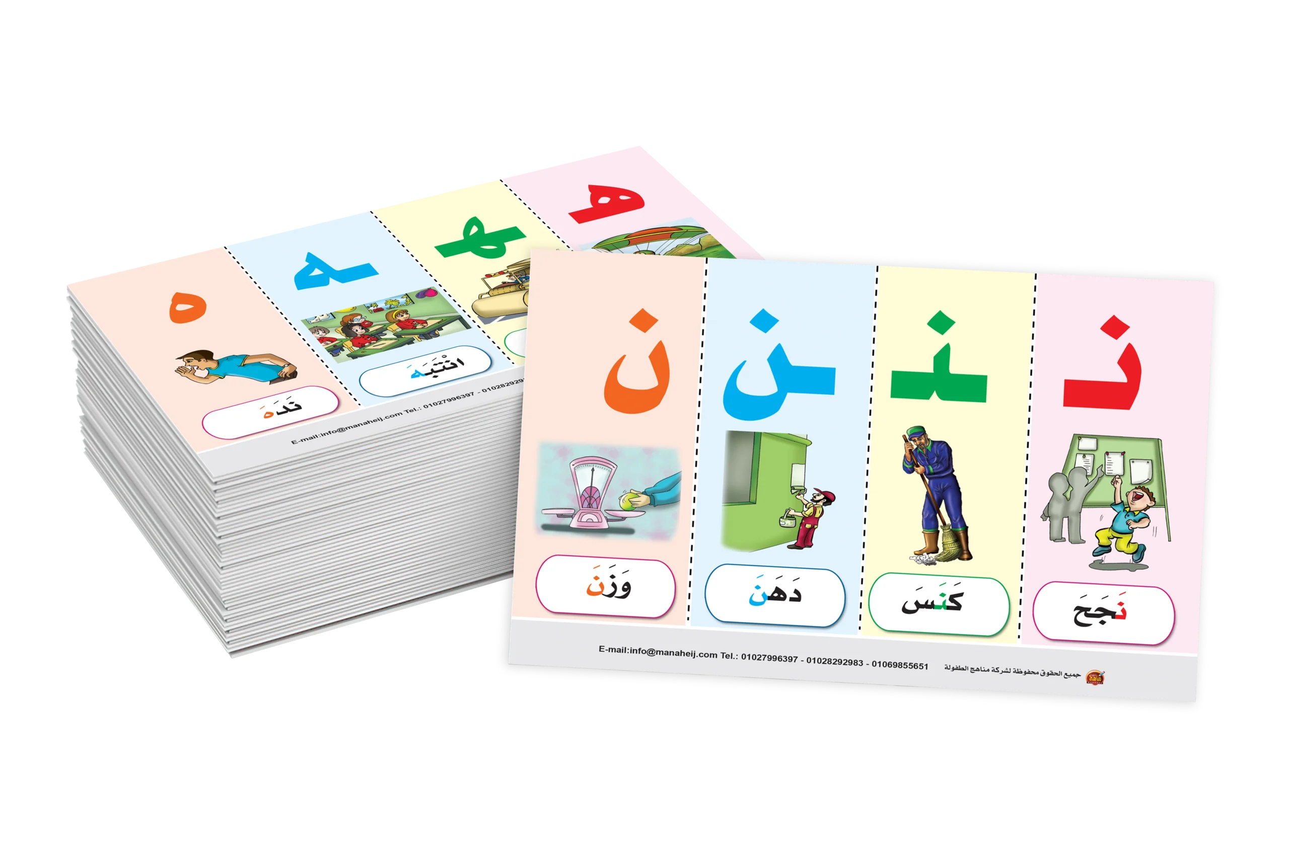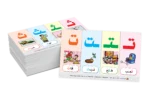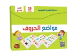 يستمتع الطفل من خلال بطاقات مشوقة ذات ألوان جميلة لكل حرف يتعلم من خلالها مواضع الحروف مع الاستعانة بمدلولات ينطقها الطفل لكل حرف.